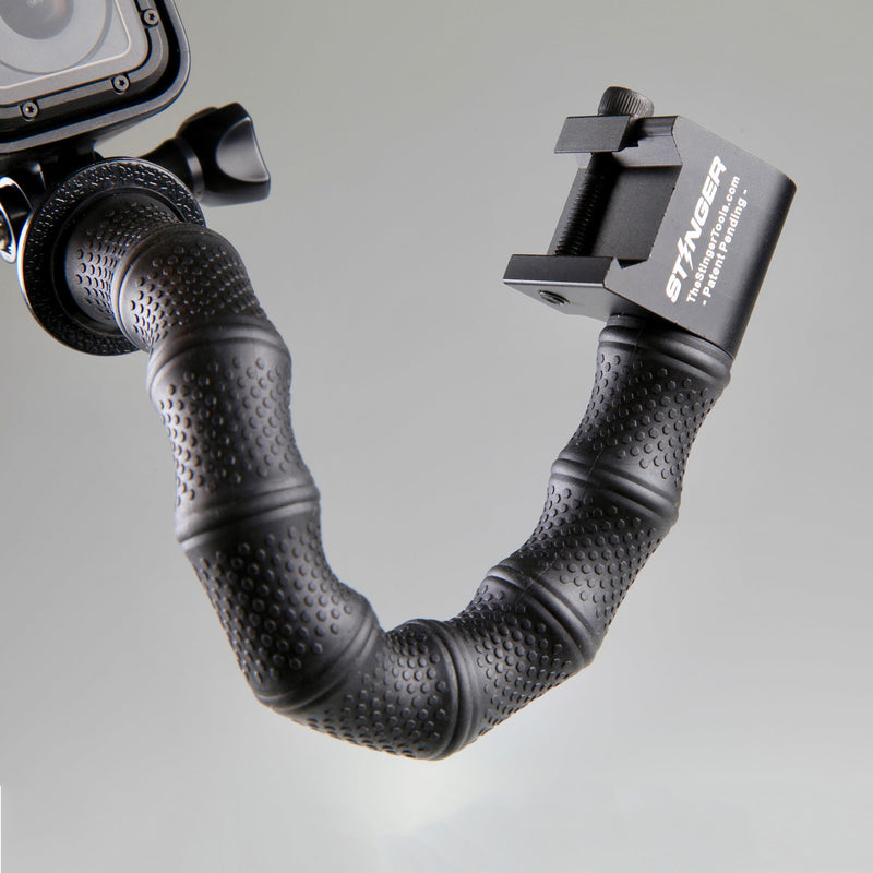 - The Stinger Python Action Camera Arm is designed to capture video from the point of view (first-person angle) of your shotguns, rifles, and handguns. It brings creative camera movements and angles to your video.