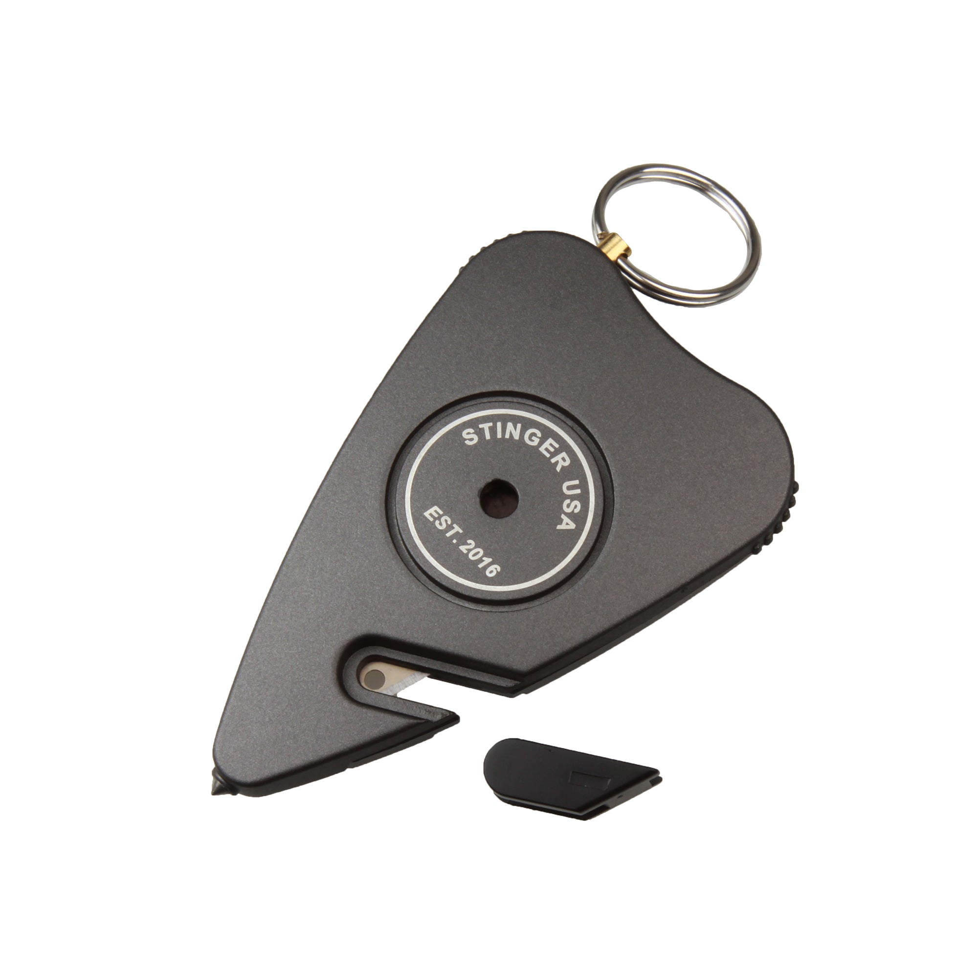 - BREAK AND ESCAPE: The glass breaker works easily and quickly to give you the best chance of escaping your vehicle. The Stinger will only break tempered glass. It is not designed to break windshields or laminated glass. RAZOR SHARP SEAT BELT CUTTER: Stinger Personal Alarm Emergency Tool comes with a razor-sharp blade to help you cut your seatbelt if you find yourself unable to release it normally. It cuts easily through safety belts to free trapped drivers and passengers. It increases the survival rate.
