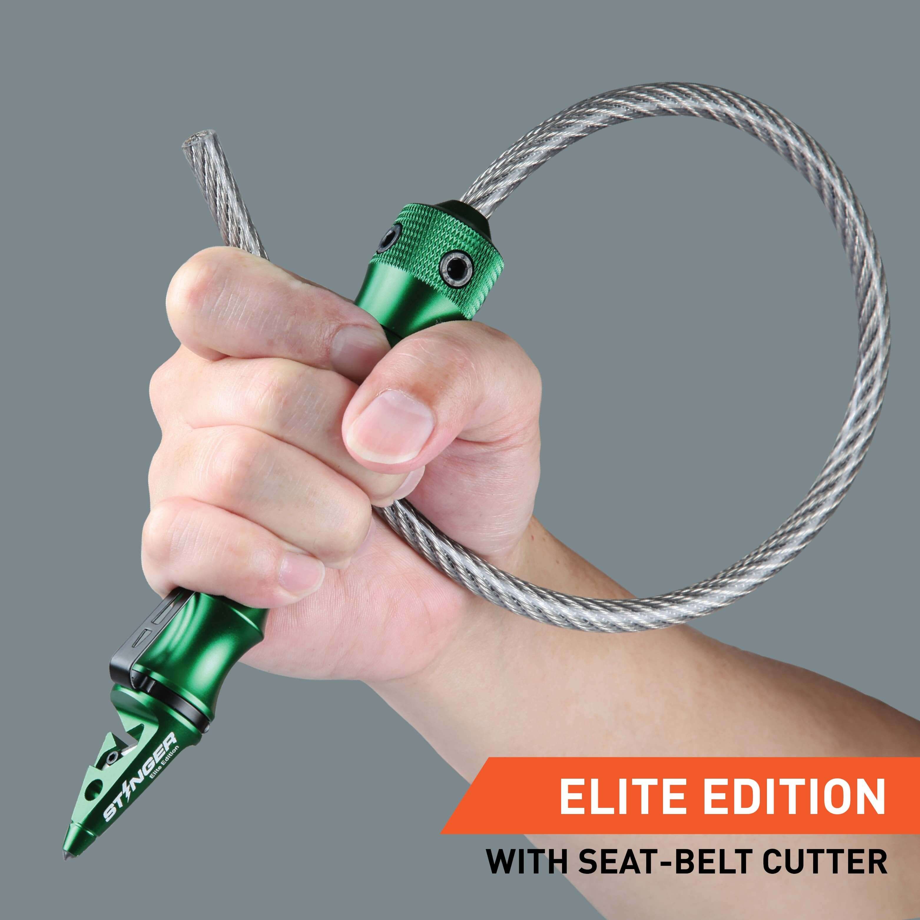 Stinger Whip Car Emergency Tool with Seat Belt Cutter and Window Breaker (Elite Edition, Green) (SC)