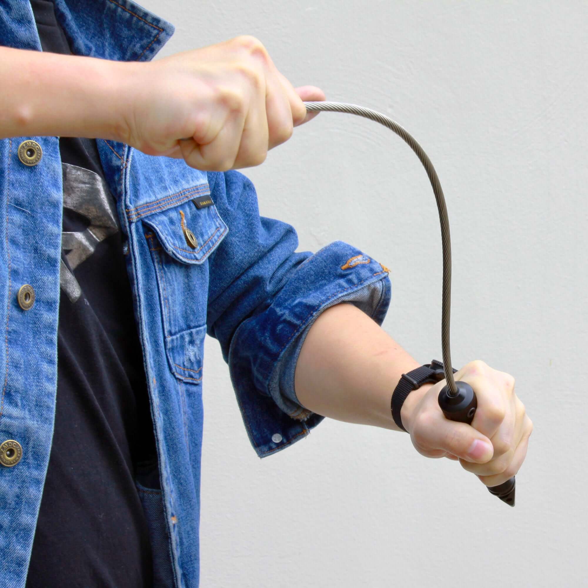Whenever you are using the whip, please make sure safety needs to be your first concern. Be aware of your surroundings and ensure you have adequate space to use the tool without inadvertently striking bystanders or striking unintended objects. After receiving the whip, become familiar with the feel of the product by slowly swinging your arm or wrist in multiple directions. As you become familiar with the action of the product, you can increase your striking speed and practice drawing the tool from various carry positions. To practice actual striking, use objects that are soft such as a heavy bag, cardboard, cushions, pillows....etc.
