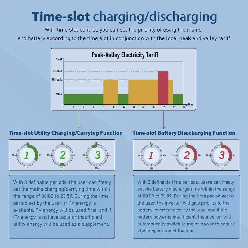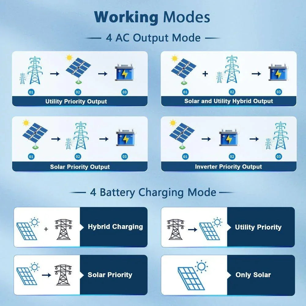 - 4 Charging Modes: Hybrid, Utility Priority, Solar Priority, Only Solar