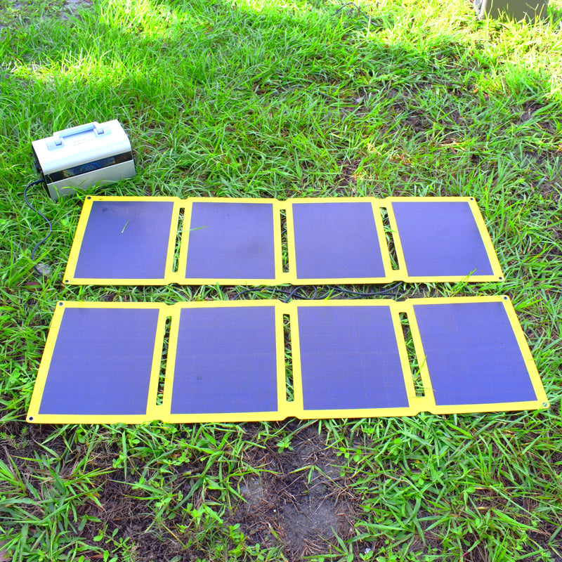 POWERFUL & FAST CHARGING SPEEDS: With up to 120 watts of power (60 watts for each solar panel), the monocrystalline panels with ETFE construction provide maximum efficiency and UV-ray permeability. Each solar panel's 22V DC5521 port provides enough charging power for most power stations and DC powered devices, while the dual USB ports allow you to charge USB-C (PD 30W) and USB-A (18W max) devices. The ETFE construction provides a UV permeability of 95% compared to 80% from PET - makes the panels more efficient than other solar chargers