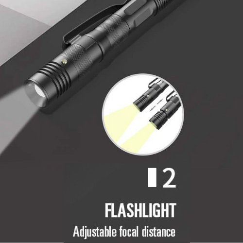 - Flashlight feature can defend, Tungsten tip feature can attack, Whistle feature can protect during emergencies
