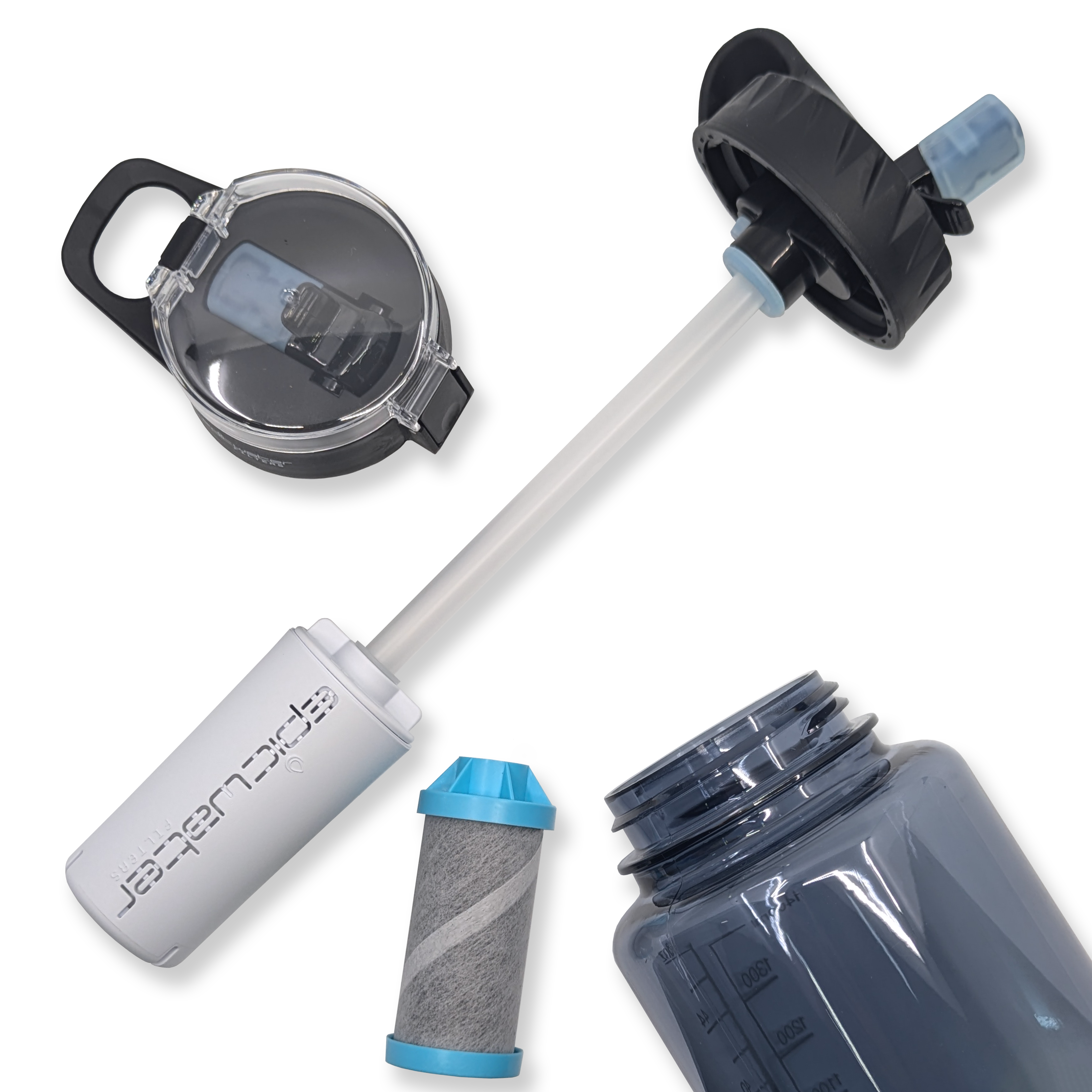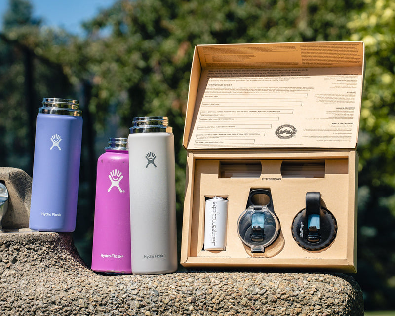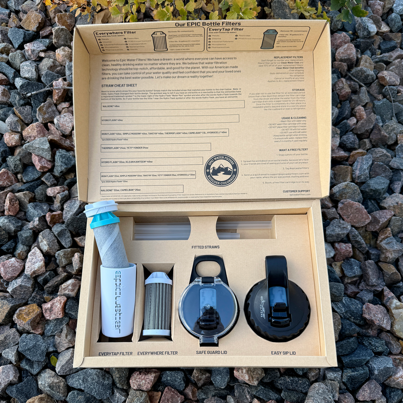 Each of our water bottles now comes equipped with two high-performance, color-coded filter cartridges to suit your hydration needs, wherever you are. For safe and crisp tap water in the U.S., use the EveryTap filter cartridge in blue, specially designed for domestic water sources. When you’re ready to venture into the outdoors or travel abroad, simply switch to the Everywhere filter cartridge in white, engineered with two distinct filter stages to conquer the toughest contaminants in natural and foreign water sources. With Epic, you can drink confidently, knowing you’re covered wherever adventure calls!