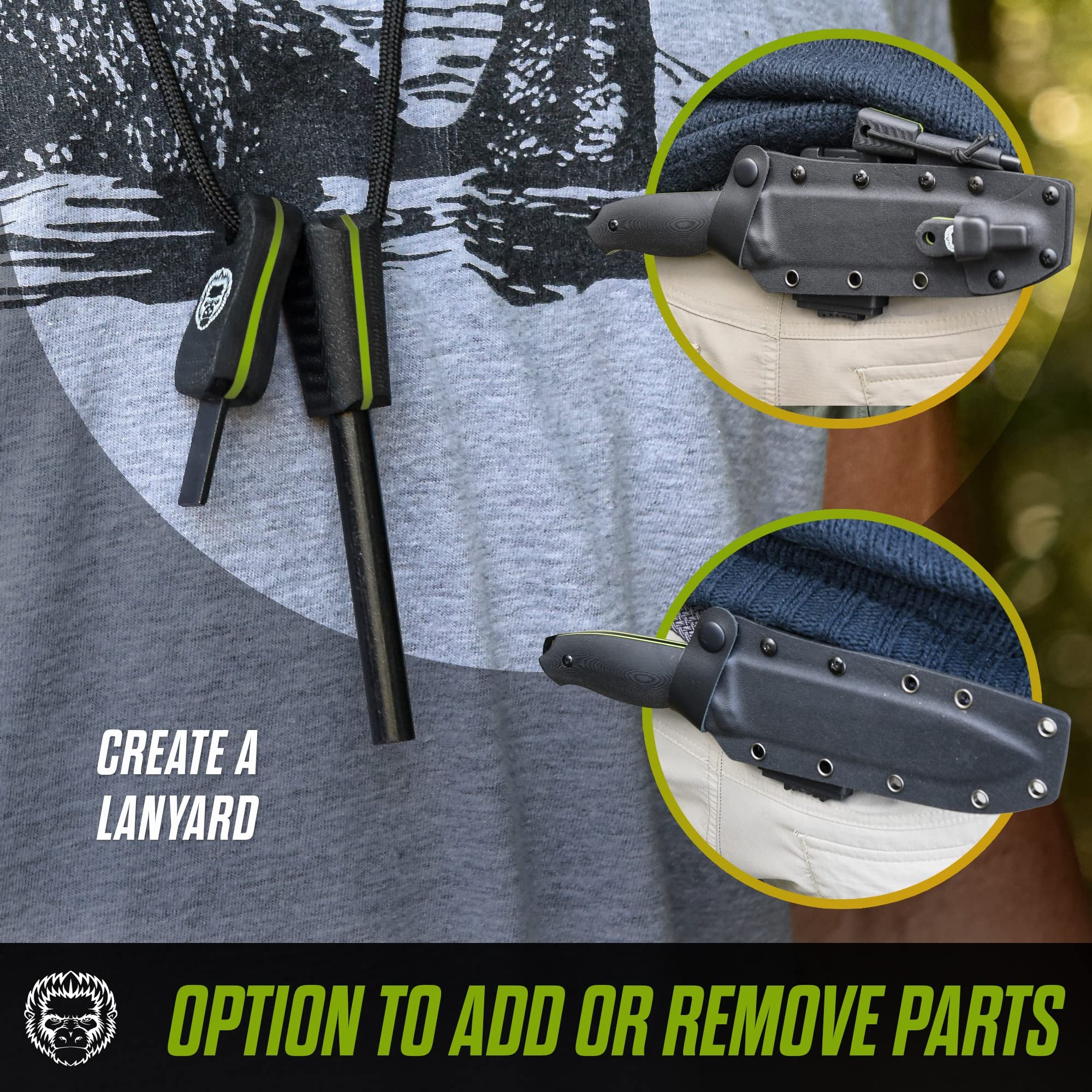 ✅GET YOUR HANDS ON A COMPLETE SURVIVAL KNIFE KIT: The Flint Rod with the G10 handle and the G10 Scraper included will help you start a fire in nature, while the Allen Wrench will hold all attachments on the K-Sheath.