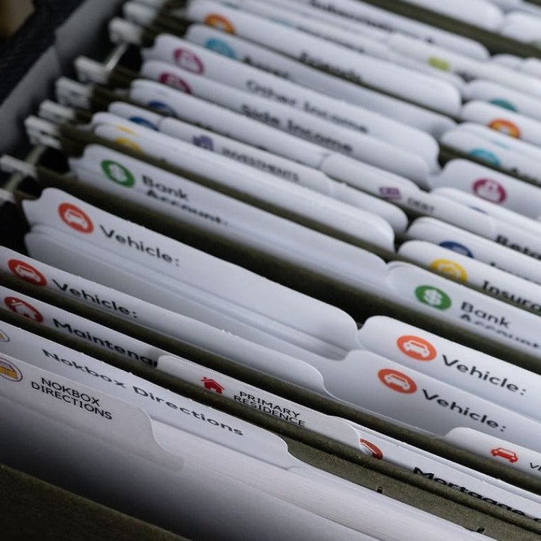 15 color-coded, labeled hanging folders to organize the categories of your Nokbox