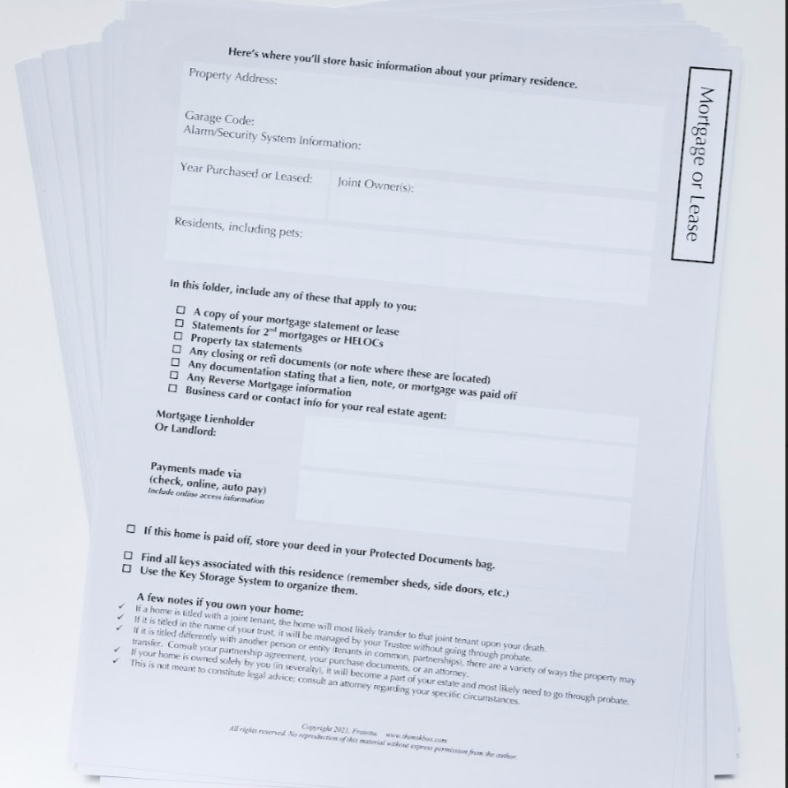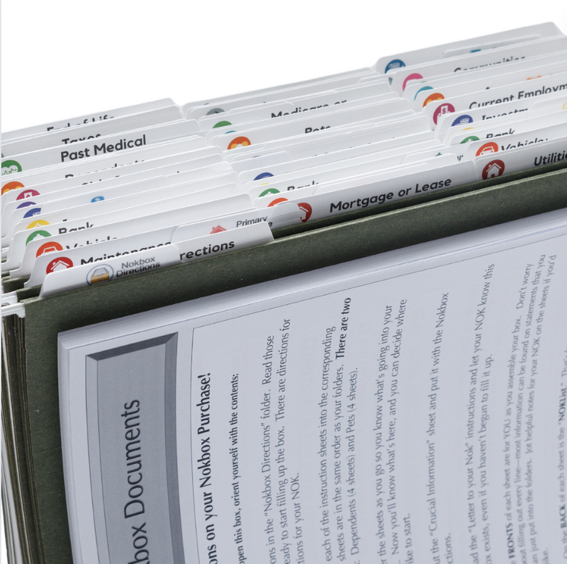 For your NOK, it provides a brief "getting started after someone dies" list, explains how to use the box, and helps them manage keys & secure documents.