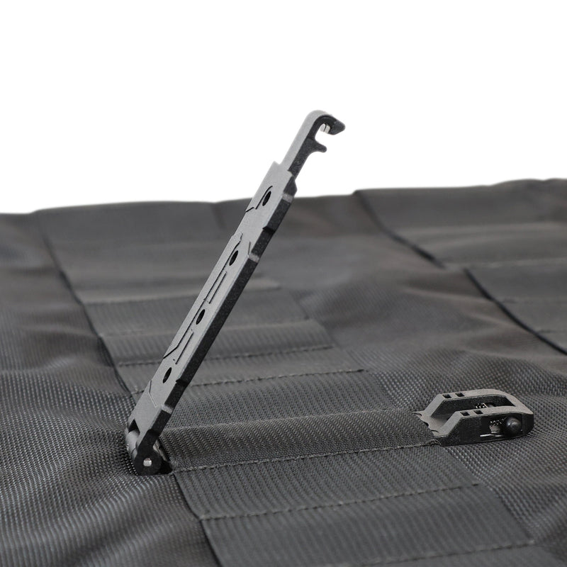 The molle panel is made of rugged Cordura nylon and 16 grommets serve your custom anchoring needs. Panels are available in black