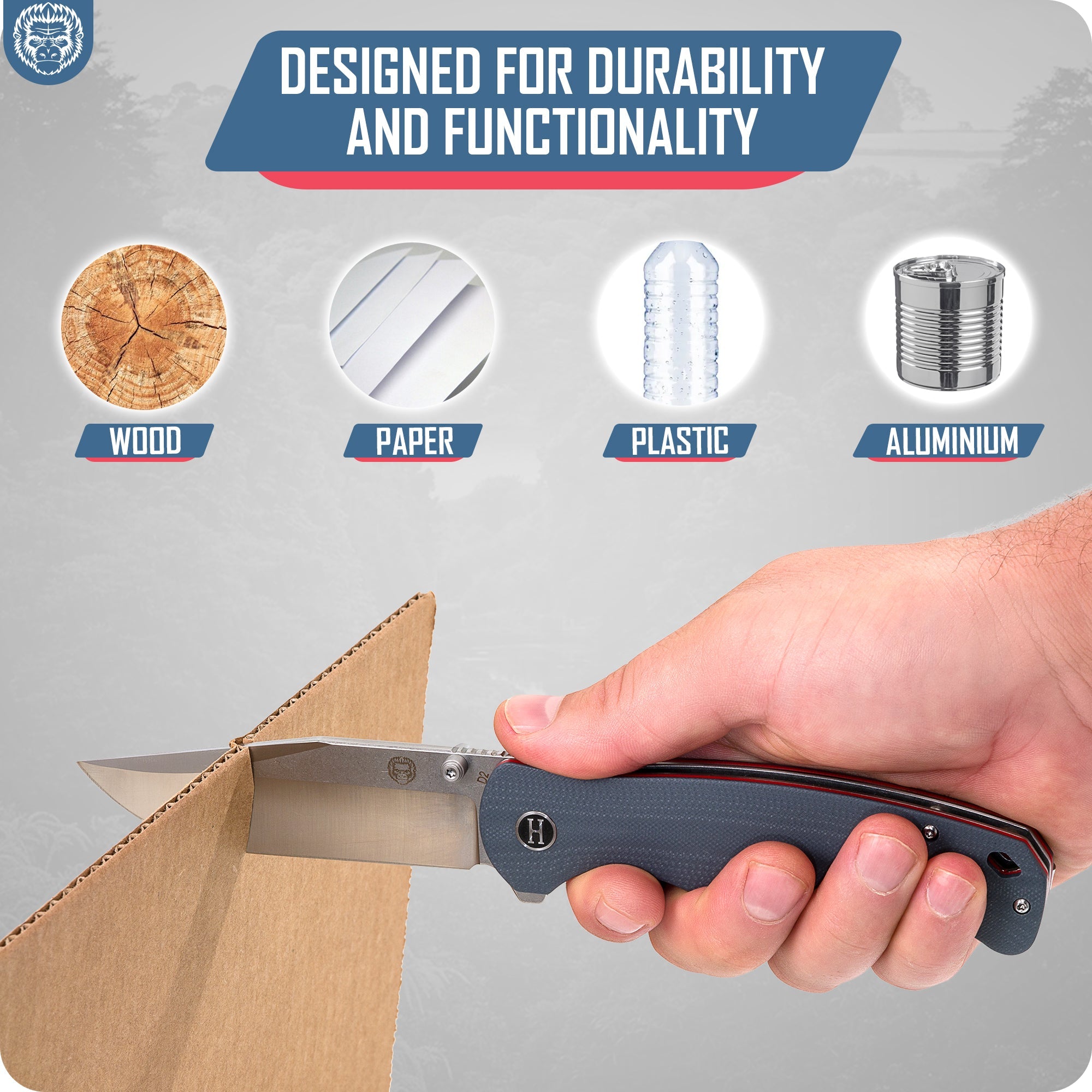 - ✅ MAX CONTROL IN USE DUE TO THE SMART DESIGN HANDLE: The G10 pocket knife handle is enhanced to provide Anti-slip & easy grip, it is designed for functionality.
