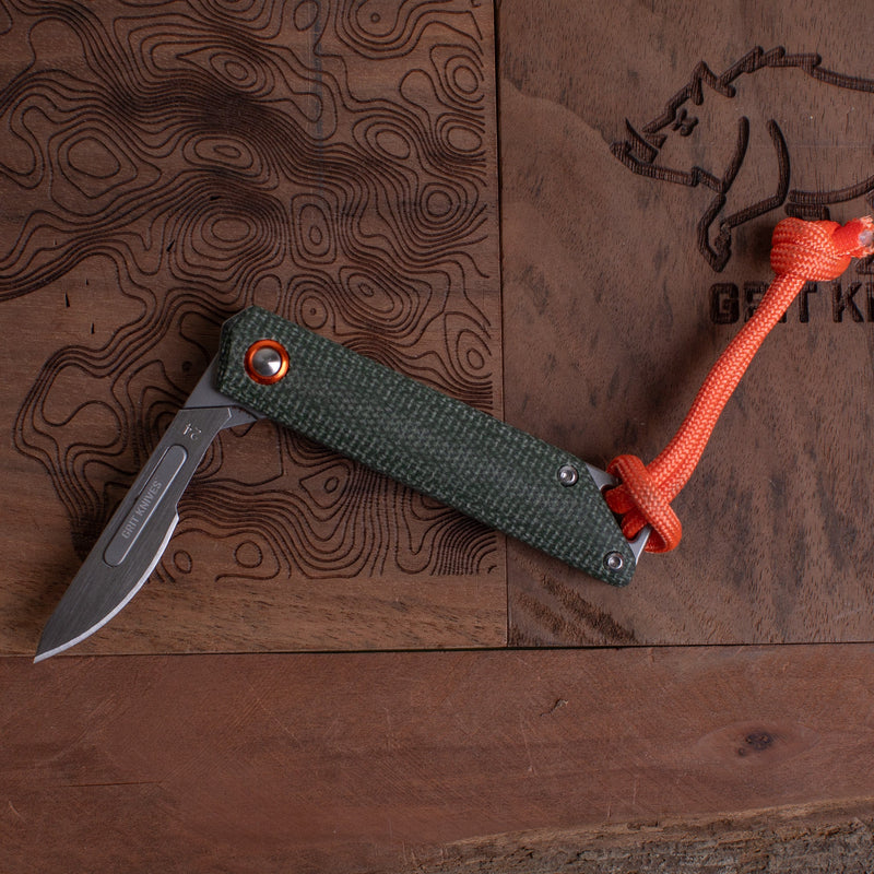 The Hunter Scalpel is the ultimate lightweight knife designed for precise tasks both in the field and around the camp. This compact tool is equipped with a standard #24 scalpel blade, known for surgical-grade sharpness, making it ideal for caping big game, fine cutting, or any delicate task that requires precision.