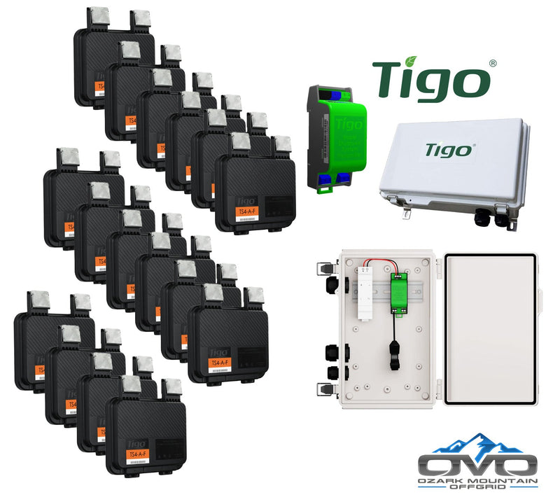 The TIGO Rapid Shutdown Kit is designed to complement our OMO E-Line 6.08KW Solar Kits. Increasingly, municipalities are requiring rapid shutdown systems be deployed as a part of rooftop solar arrays. Please check your local regulations and discuss this option with an OMO Technical Expert to determine if this system is required on your particular application. This system includes the required number of TS4-A-F (Fire Safety) advanced add-on rapid shutdown modules and RSS Transmitter kits required for your OMO Solar System. This kit provides a small discount off the cost of individual components. As a bonus, if you add a Rapid Shutdown Kit to one of our solar kits you'll receive an additional 10% discount off this package!