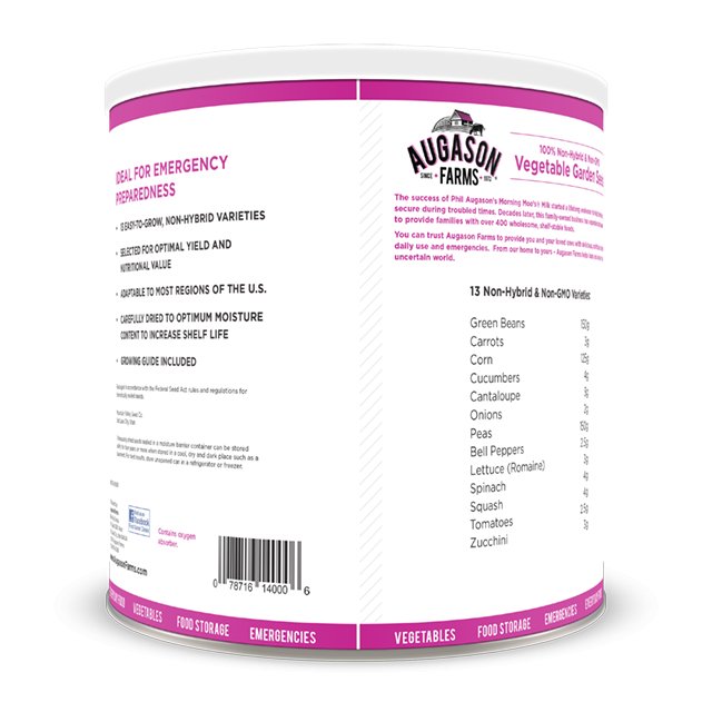Specially selected for their storage capability, these high yielding vegetable varieties grow in almost any region, making them an ideal addition to any survival food kit. Augason Farms Vegetable Garden Seeds are non-hybrid, open pollinated seeds.