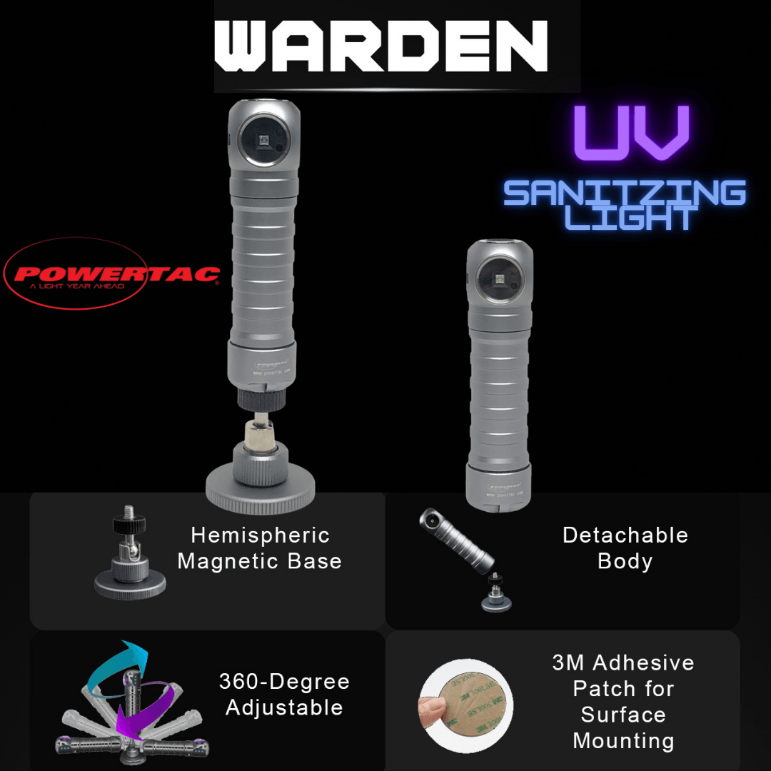 The Warden UV Disinfection Light is a portable device intended to safely disinfect any surface and kill 99.99% of viruses and bacteria.