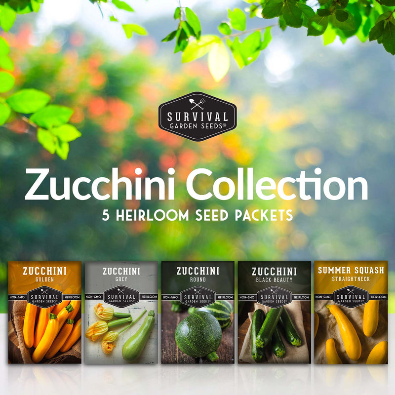 - Summer Bounty - A mix of five packs of edible zucchini & squash for you to plant and grow in your garden: Black Beauty Zucchini, Round Zucchini, Golden Zucchini, Grey Zucchini, and Straight Neck (Yellow) Summer Squash. These are popular, reliable summer squash variants that have delighted farmers and gardeners for their taste and production.